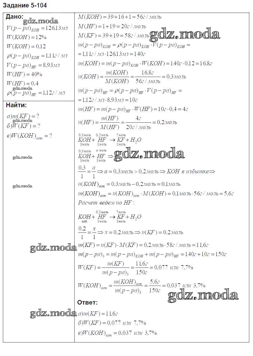ГДЗ решение к заданию № 104 Химия 8 класс задачник Кузнецова Н.Е. Вентана-граф 2015 ФГОС бесплатно на гдз.мода!