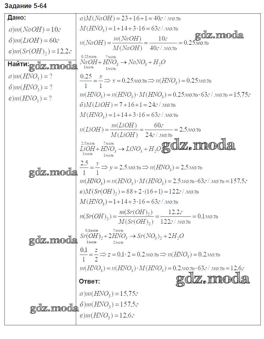 ГДЗ решение к заданию № 64 Химия 8 класс задачник Кузнецова Н.Е. Вентана-граф 2015 ФГОС бесплатно на гдз.мода!