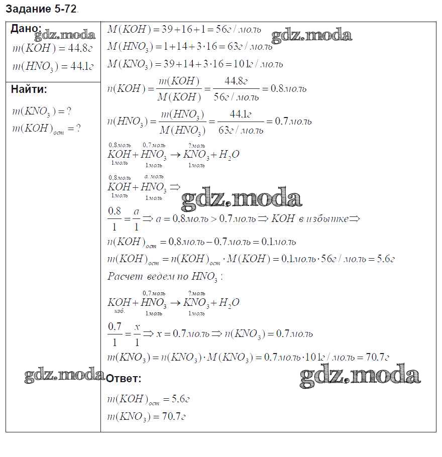 ГДЗ решение к заданию № 72 Химия 8 класс задачник Кузнецова Н.Е. Вентана-граф 2015 ФГОС бесплатно на гдз.мода!