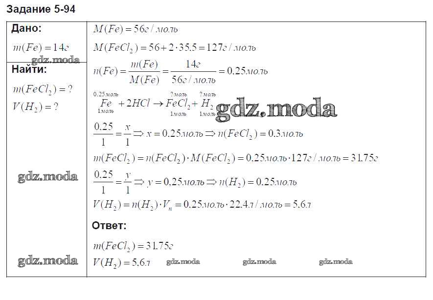 ГДЗ решение к заданию № 94 Химия 8 класс задачник Кузнецова Н.Е. Вентана-граф 2015 ФГОС бесплатно на гдз.мода!