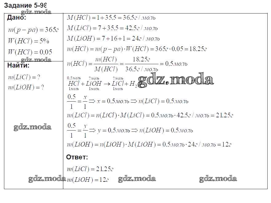 ГДЗ решение к заданию № 98 Химия 8 класс задачник Кузнецова Н.Е. Вентана-граф 2015 ФГОС бесплатно на гдз.мода!