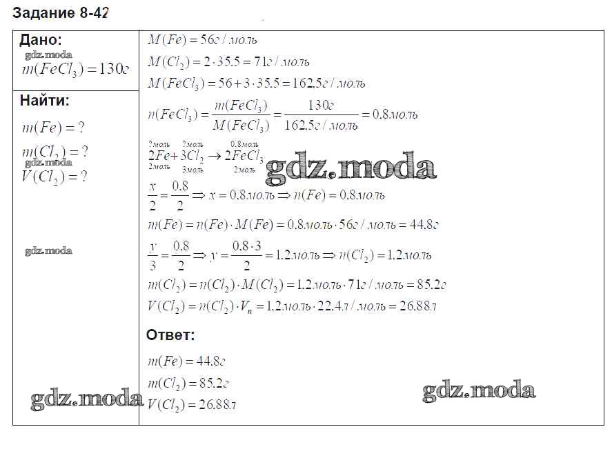 ГДЗ решение к заданию № 42 Химия 8 класс задачник Кузнецова Н.Е. Вентана-граф 2015 ФГОС бесплатно на гдз.мода!