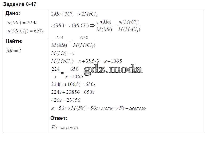 ОТВЕТ на задание № 47 Задачник по Химии 8 класс Кузнецова Алгоритм успеха