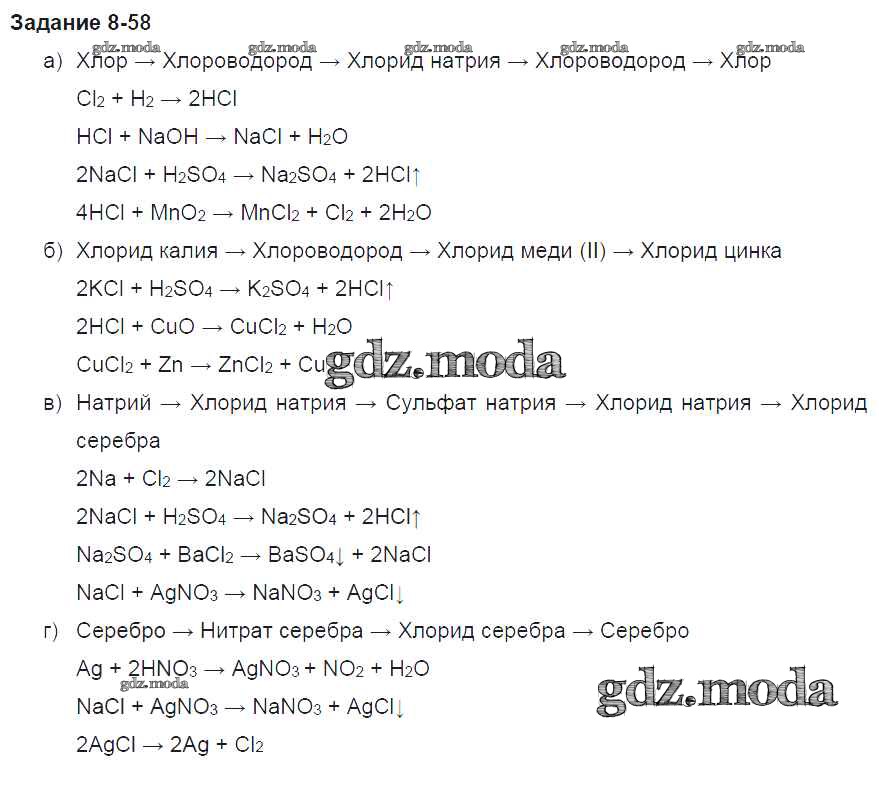 ГДЗ решение к заданию № 58 Химия 8 класс задачник Кузнецова Н.Е. Вентана-граф 2015 ФГОС бесплатно на гдз.мода!