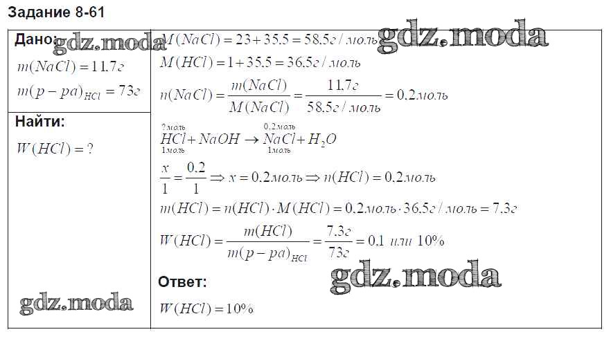 ГДЗ решение к заданию № 61 Химия 8 класс задачник Кузнецова Н.Е. Вентана-граф 2015 ФГОС бесплатно на гдз.мода!