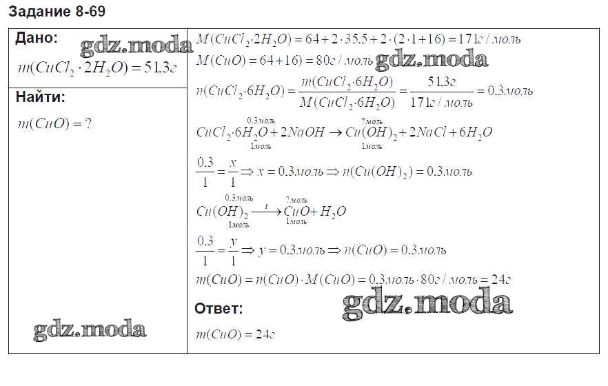 ОТВЕТ на задание № 69 Задачник по Химии 8 класс Кузнецова Алгоритм успеха