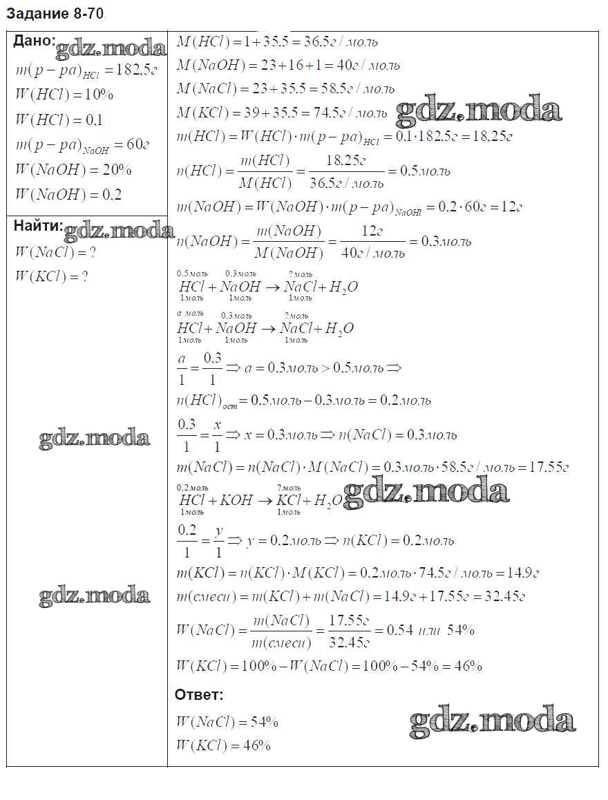 ГДЗ решение к заданию № 70 Химия 8 класс задачник Кузнецова Н.Е. Вентана-граф 2015 ФГОС бесплатно на гдз.мода!