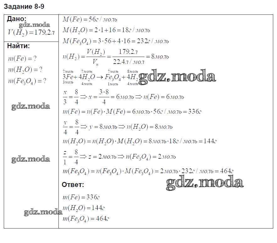 ГДЗ решение к заданию № 9 Химия 8 класс задачник Кузнецова Н.Е. Вентана-граф 2015 ФГОС бесплатно на гдз.мода!
