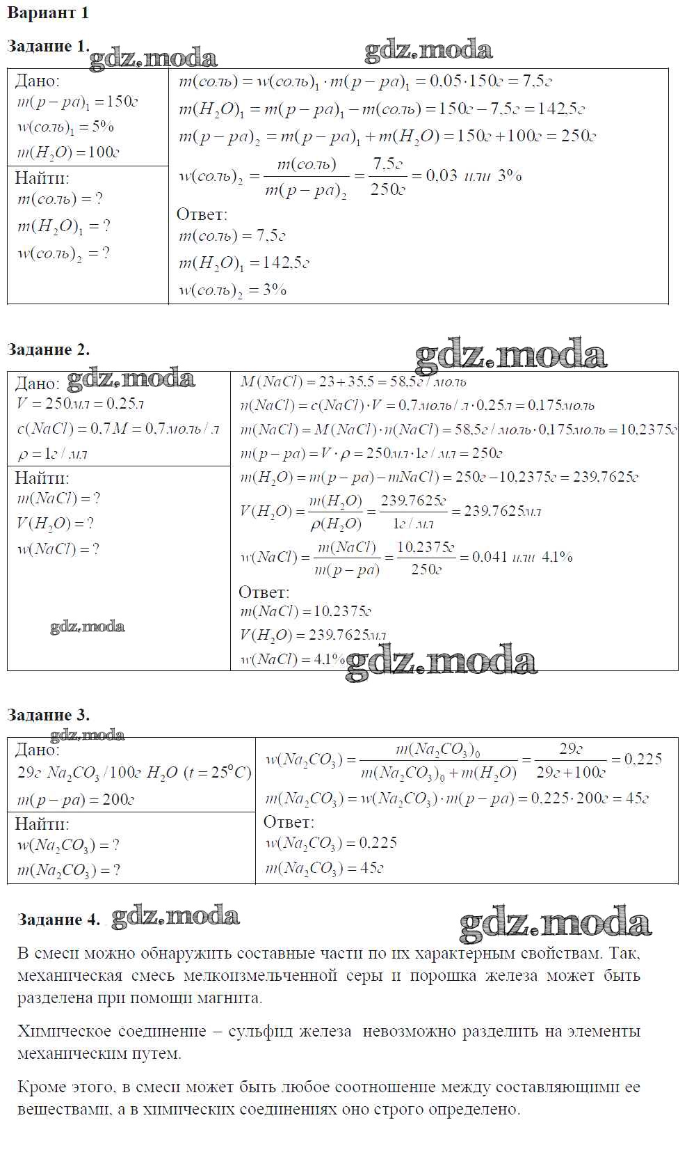 ОТВЕТ на задание № 1 Задачник по Химии 8 класс Кузнецова Алгоритм успеха