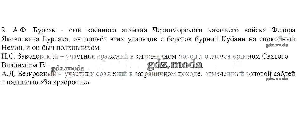 ОТВЕТ на задание № 2 Рабочая тетрадь по Кубановедению 8 класс Гриценко