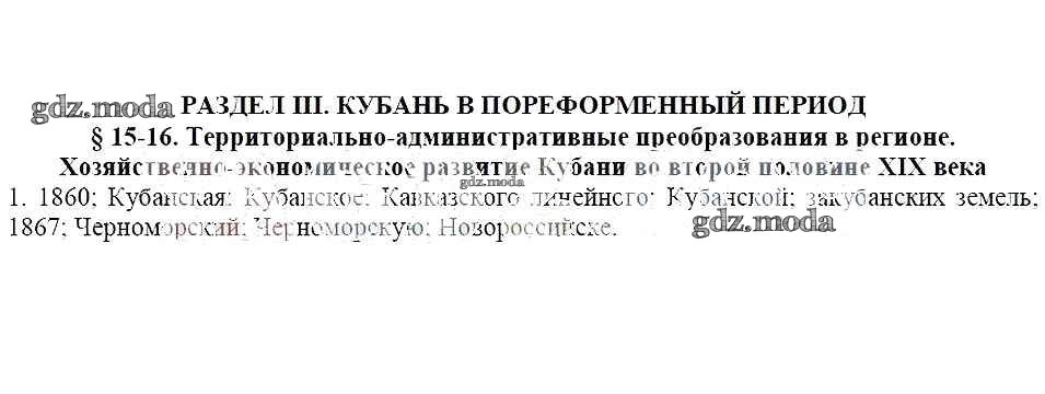 ОТВЕТ на задание № 1 Рабочая тетрадь по Кубановедению 8 класс Гриценко