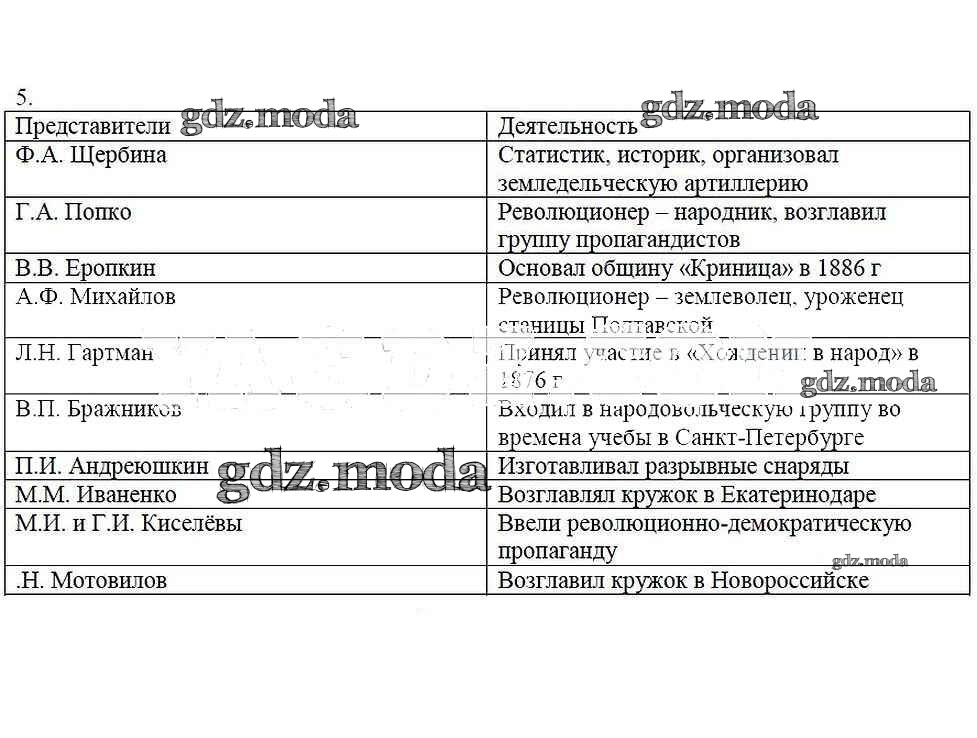 ГДЗ решение к заданию № 5 Кубановедение 8 класс рабочая тетрадь Гриценко Р.М. Перспективы образования 2018 бесплатно на гдз.мода!
