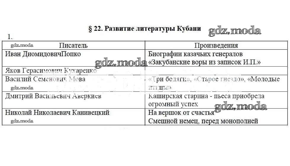 ОТВЕТ на задание № 1 Рабочая тетрадь по Кубановедению 8 класс Гриценко
