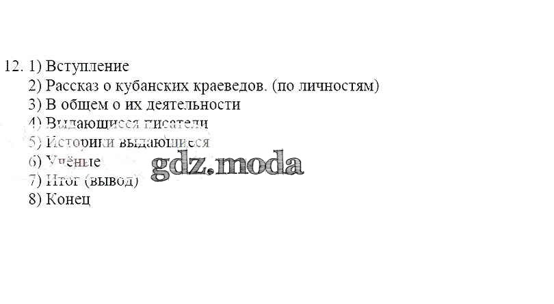 ГДЗ решение к заданию № 12 Кубановедение 8 класс рабочая тетрадь Гриценко Р.М. Перспективы образования 2018 бесплатно на гдз.мода!