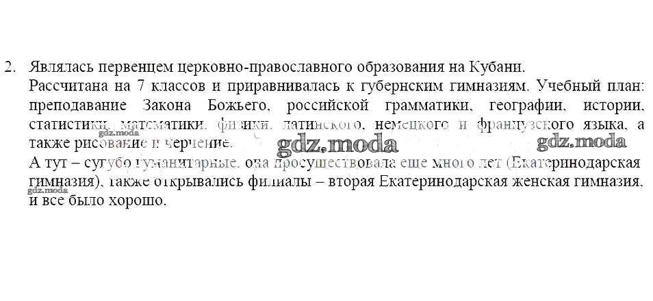 ГДЗ решение к заданию № 2 Кубановедение 8 класс рабочая тетрадь Гриценко Р.М. Перспективы образования 2018 бесплатно на гдз.мода!