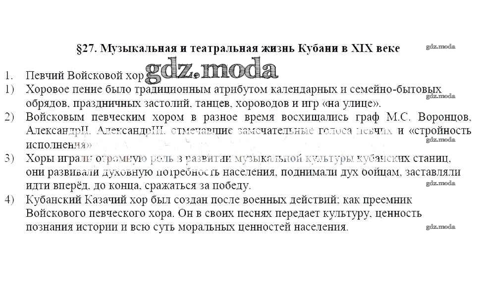 ОТВЕТ на задание № 1 Рабочая тетрадь по Кубановедению 8 класс Гриценко