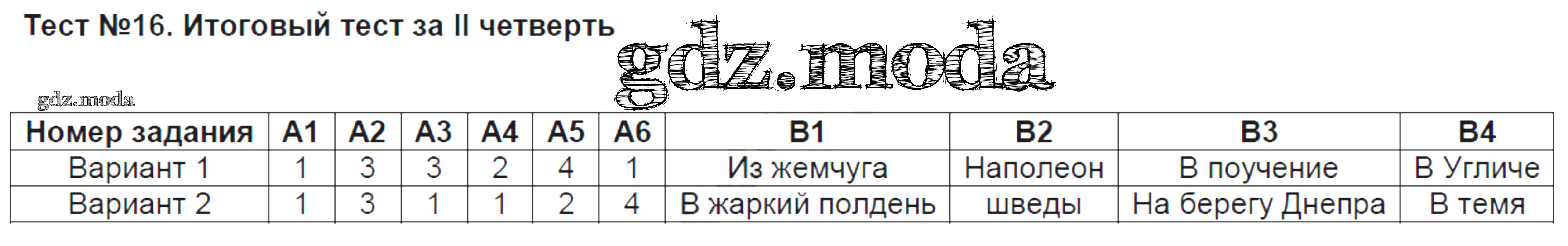 ГДЗ решение к заданию № 16 Литература 8 класс КИМ Зубова Е.Н. ВАКО 2015 ФГОС бесплатно на гдз.мода!