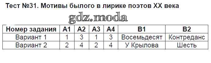 ГДЗ решение к заданию № 31 Литература 8 класс КИМ Зубова Е.Н. ВАКО 2015 ФГОС бесплатно на гдз.мода!