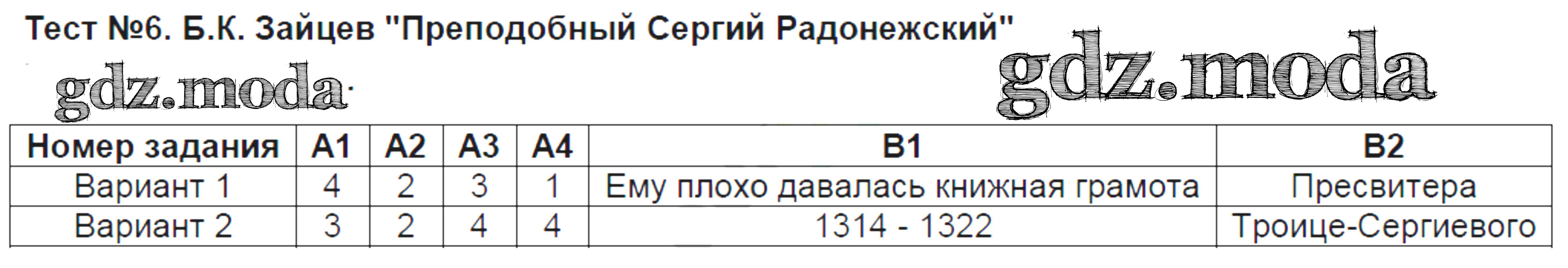 ГДЗ решение к заданию № 6 Литература 8 класс КИМ Зубова Е.Н. ВАКО 2015 ФГОС бесплатно на гдз.мода!