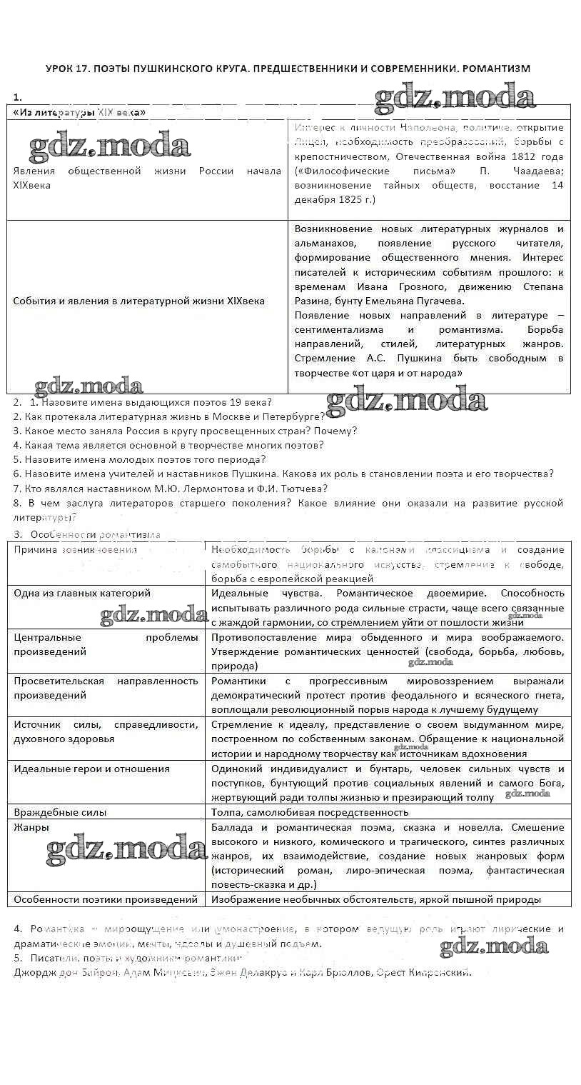 ГДЗ решение к заданию № 17 Литература 8 класс рабочая тетрадь Соловьева Ф.Е. Русское слово 2016 ФГОС бесплатно на гдз.мода!