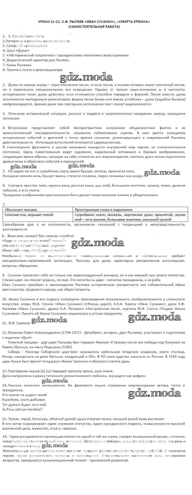 ГДЗ решение к заданию № 21 Литература 8 класс рабочая тетрадь Соловьева Ф.Е. Русское слово 2016 ФГОС бесплатно на гдз.мода!