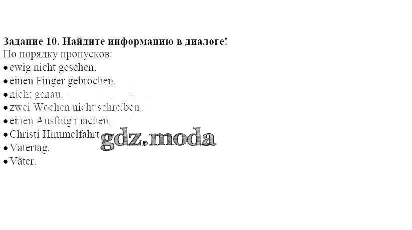 ГДЗ решение к заданию № 10 Немецкий язык 8 класс Alles Klar! Радченко О.А. Дрофа 2015 ФГОС бесплатно на гдз.мода!