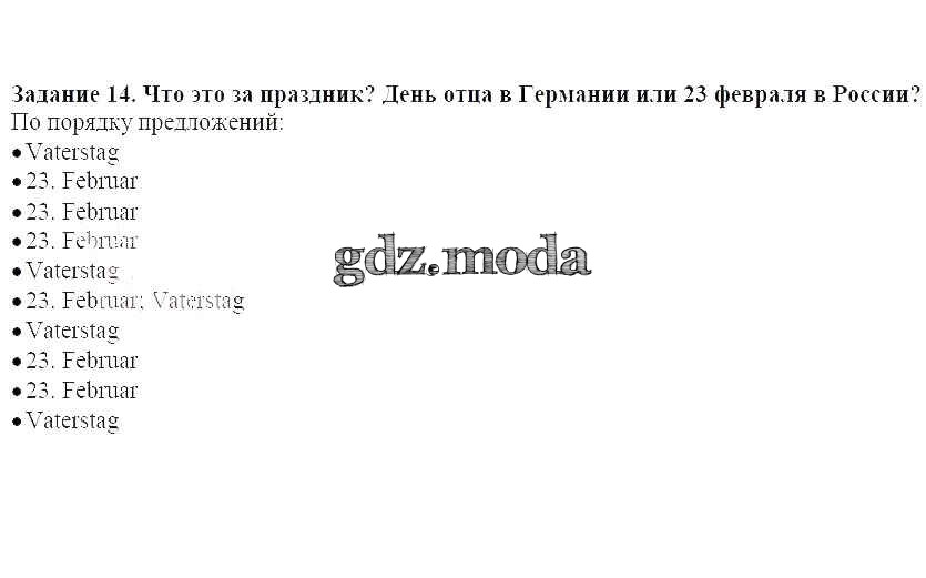 ГДЗ решение к заданию № 14 Немецкий язык 8 класс Alles Klar! Радченко О.А. Дрофа 2015 ФГОС бесплатно на гдз.мода!