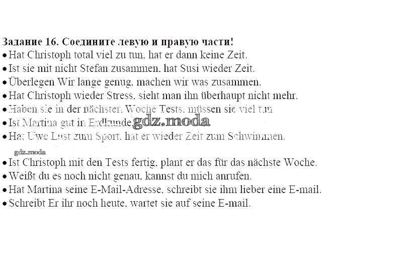 ГДЗ решение к заданию № 16 Немецкий язык 8 класс Alles Klar! Радченко О.А. Дрофа 2015 ФГОС бесплатно на гдз.мода!