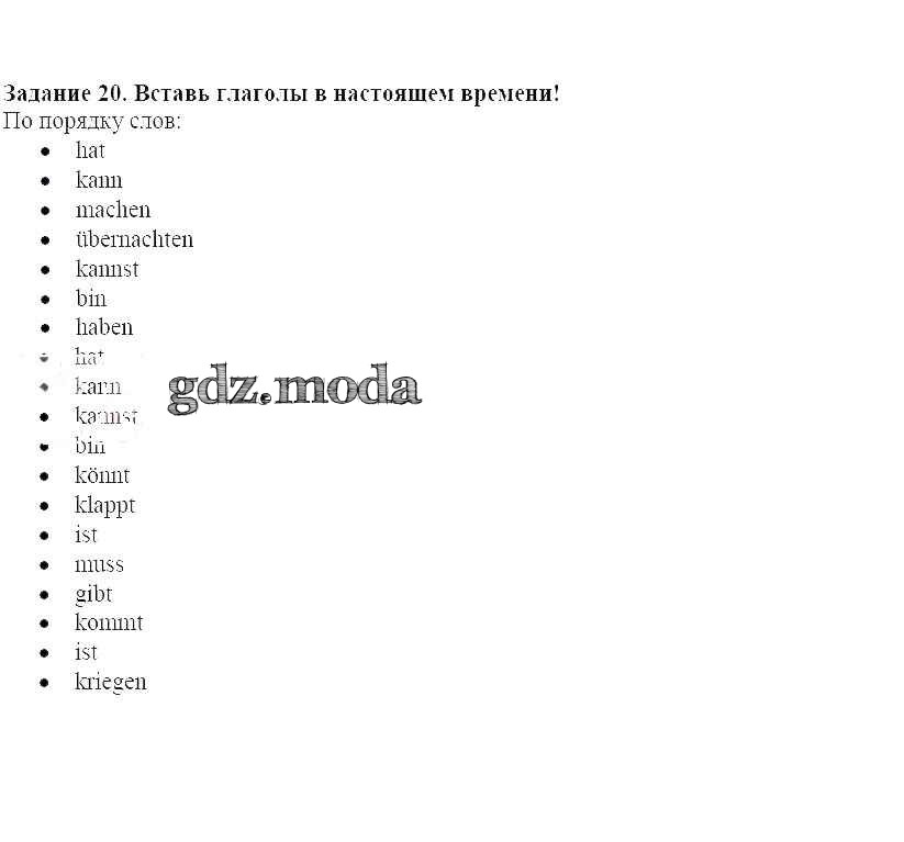 ГДЗ решение к заданию № 20 Немецкий язык 8 класс Alles Klar! Радченко О.А. Дрофа 2015 ФГОС бесплатно на гдз.мода!