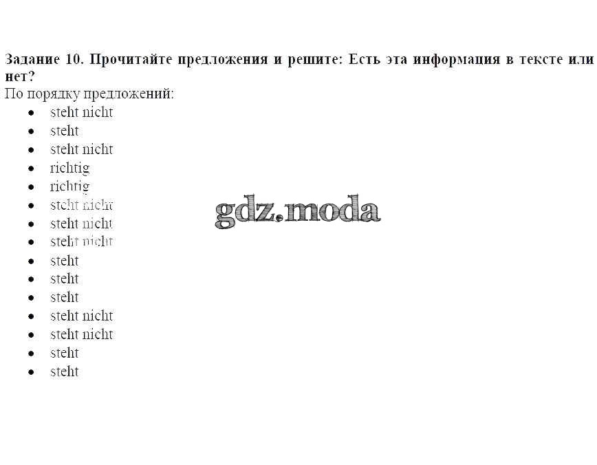 ГДЗ решение к заданию № 10 Немецкий язык 8 класс Alles Klar! Радченко О.А. Дрофа 2015 ФГОС бесплатно на гдз.мода!
