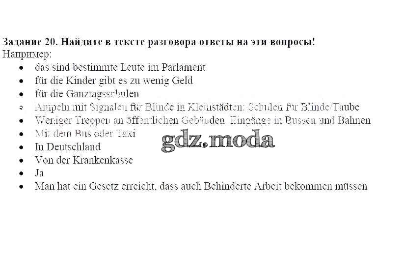 ГДЗ решение к заданию № 20 Немецкий язык 8 класс Alles Klar! Радченко О.А. Дрофа 2015 ФГОС бесплатно на гдз.мода!