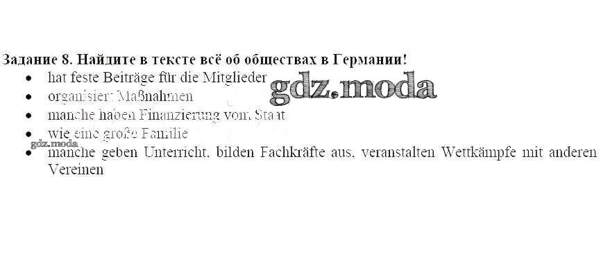 ГДЗ решение к заданию № 8 Немецкий язык 8 класс Alles Klar! Радченко О.А. Дрофа 2015 ФГОС бесплатно на гдз.мода!