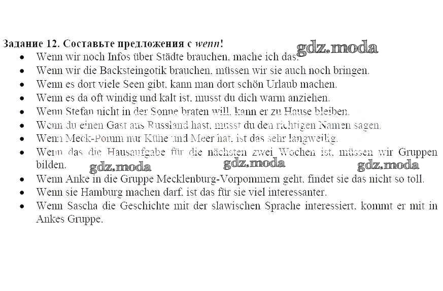 ГДЗ решение к заданию № 12 Немецкий язык 8 класс Alles Klar! Радченко О.А. Дрофа 2015 ФГОС бесплатно на гдз.мода!