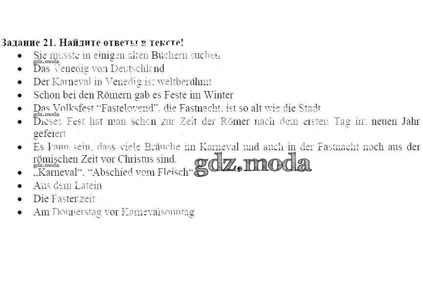 ГДЗ решение к заданию № 21 Немецкий язык 8 класс Alles Klar! Радченко О.А. Дрофа 2015 ФГОС бесплатно на гдз.мода!
