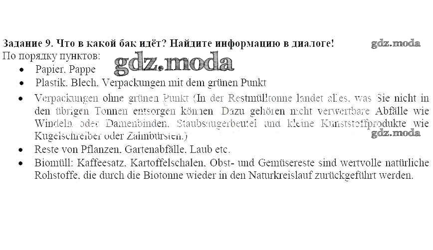 ГДЗ решение к заданию № 9 Немецкий язык 8 класс Alles Klar! Радченко О.А. Дрофа 2015 ФГОС бесплатно на гдз.мода!