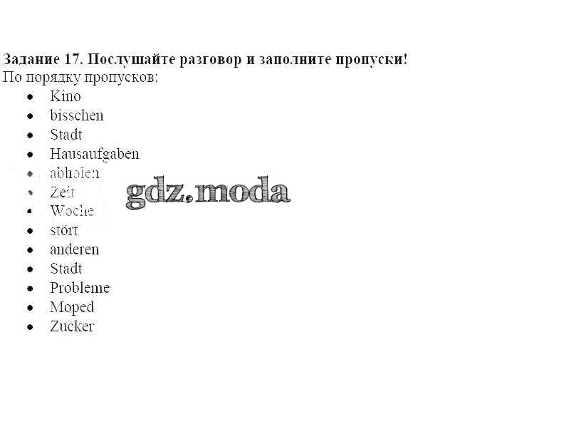 ГДЗ решение к заданию № 17 Немецкий язык 8 класс Alles Klar! Радченко О.А. Дрофа 2015 ФГОС бесплатно на гдз.мода!