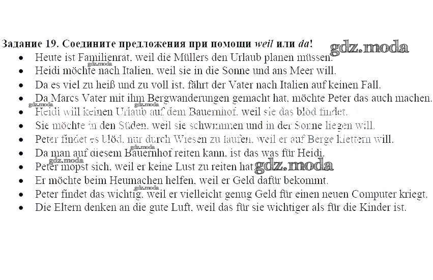 ГДЗ решение к заданию № 19 Немецкий язык 8 класс Alles Klar! Радченко О.А. Дрофа 2015 ФГОС бесплатно на гдз.мода!