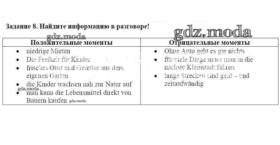 ГДЗ решение к заданию № 8 Немецкий язык 8 класс Alles Klar! Радченко О.А. Дрофа 2015 ФГОС бесплатно на гдз.мода!