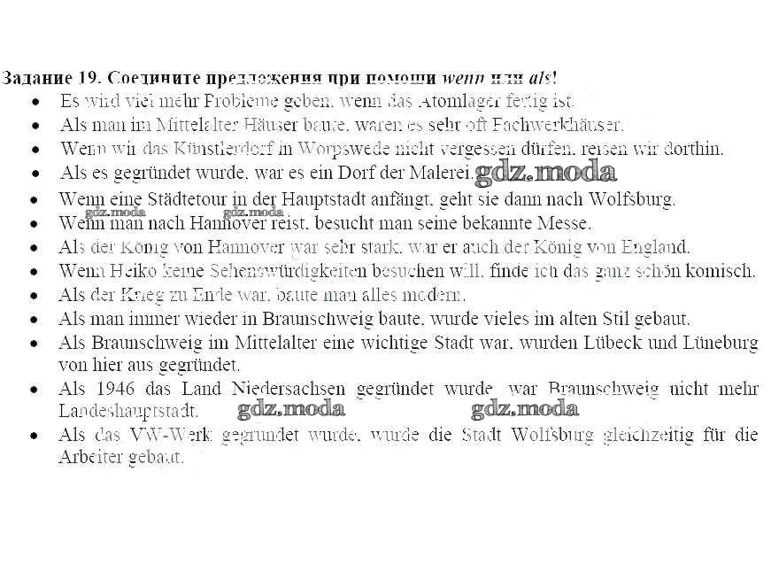 ГДЗ решение к заданию № 19 Немецкий язык 8 класс Alles Klar! Радченко О.А. Дрофа 2015 ФГОС бесплатно на гдз.мода!