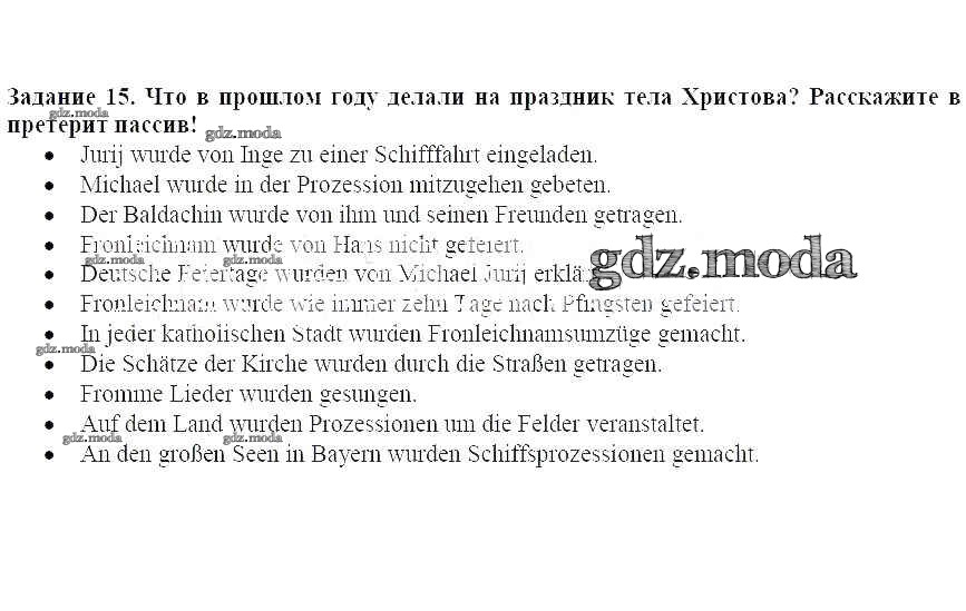 ГДЗ решение к заданию № 15 Немецкий язык 8 класс Alles Klar! Радченко О.А. Дрофа 2015 ФГОС бесплатно на гдз.мода!
