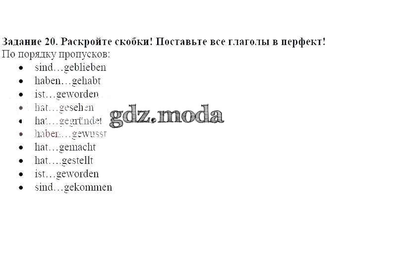 ГДЗ решение к заданию № 20 Немецкий язык 8 класс Alles Klar! Радченко О.А. Дрофа 2015 ФГОС бесплатно на гдз.мода!