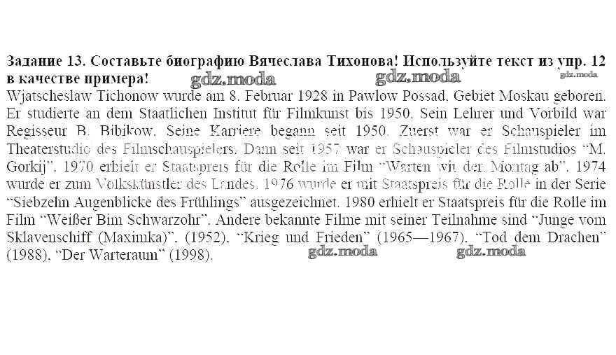 ГДЗ решение к заданию № 13 Немецкий язык 8 класс Alles Klar! Радченко О.А. Дрофа 2015 ФГОС бесплатно на гдз.мода!