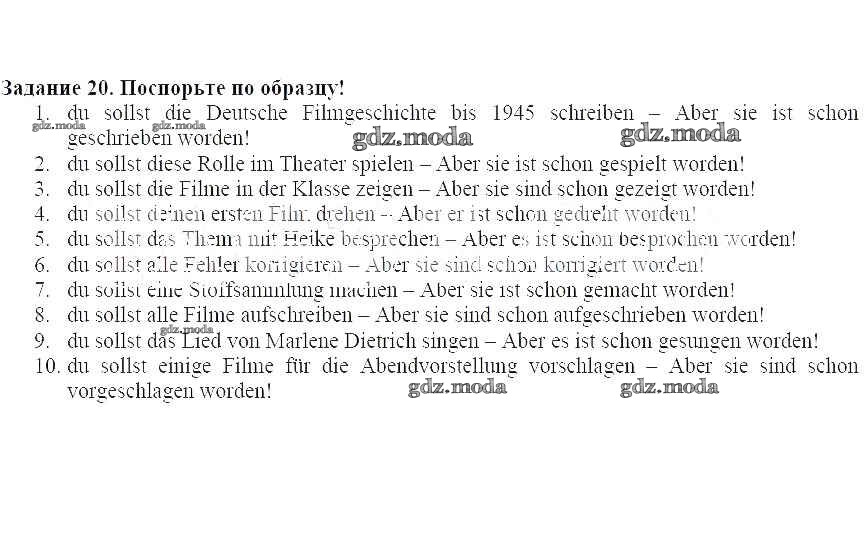 ГДЗ решение к заданию № 20 Немецкий язык 8 класс Alles Klar! Радченко О.А. Дрофа 2015 ФГОС бесплатно на гдз.мода!