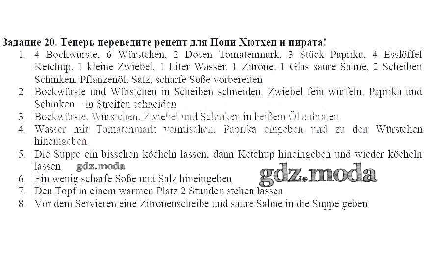 ГДЗ решение к заданию № 20 Немецкий язык 8 класс Alles Klar! Радченко О.А. Дрофа 2015 ФГОС бесплатно на гдз.мода!