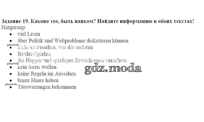 ГДЗ решение к заданию № 19 Немецкий язык 8 класс Alles Klar! Радченко О.А. Дрофа 2015 ФГОС бесплатно на гдз.мода!