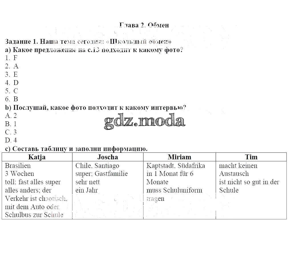 ГДЗ решение к заданию № 1 Немецкий язык 8 класс Аверин М.М. Просвещение 2016 ФГОС бесплатно на гдз.мода!