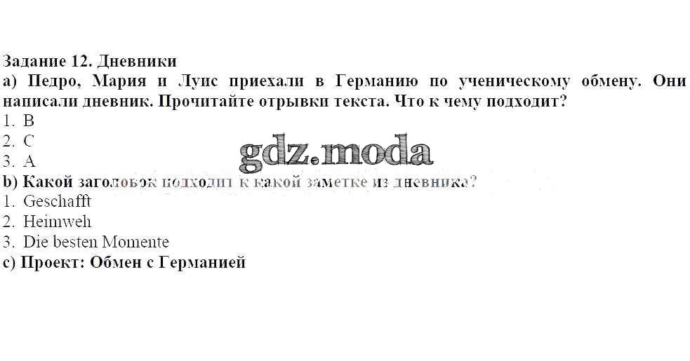 ГДЗ решение к заданию № 12 Немецкий язык 8 класс Аверин М.М. Просвещение 2016 ФГОС бесплатно на гдз.мода!