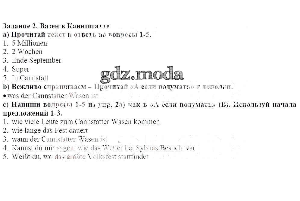 ГДЗ решение к заданию № 2 Немецкий язык 8 класс Аверин М.М. Просвещение 2016 ФГОС бесплатно на гдз.мода!