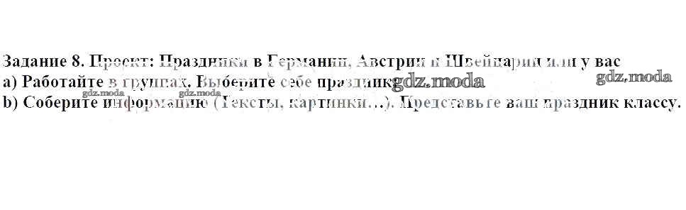 ГДЗ решение к заданию № 8 Немецкий язык 8 класс Аверин М.М. Просвещение 2016 ФГОС бесплатно на гдз.мода!
