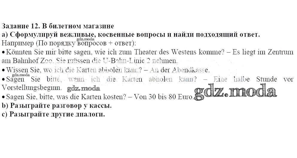 ГДЗ решение к заданию № 12 Немецкий язык 8 класс Аверин М.М. Просвещение 2016 ФГОС бесплатно на гдз.мода!